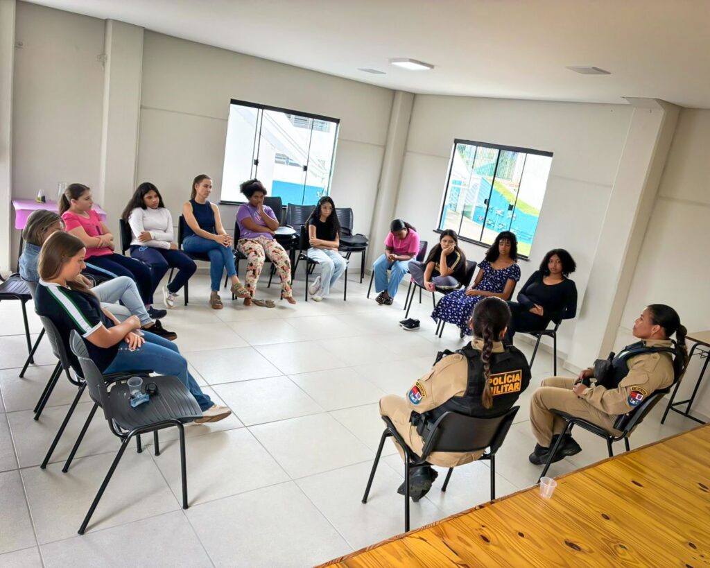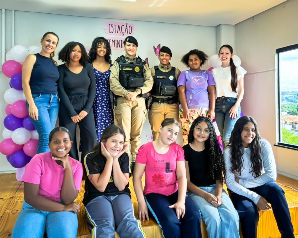 Dando continuidade ao cronograma, no dia 27 de fevereiro, o Projeto Estação Feminina promoveu a atividade “Mulheres que Inspiram”. O encontro contou com a presença de duas convidadas especiais: as policiais militares Soldado Edina e Cabo Agnes. A iniciativa tem como objetivo aproximar as participantes de mulheres que se destacam em suas áreas de atuação, compartilhando trajetórias reais capazes de encorajar e inspirar as jovens.