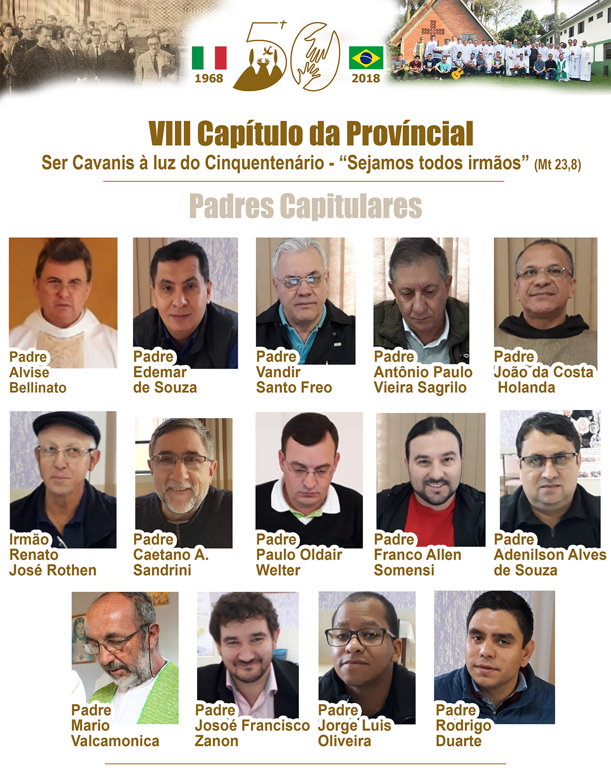 Segundo dia de trabalhos do VIII Capítulo Padres capitulares, escolhidos segundo a regras de nossa Constituição e Normas.Hoje, segundo dia de encontro dos padres capitulares que seguem realizando os trabalhos do VIII Capítulo provincial. Entre as atividades eles devem analisar as realidades de cada comunidade local, propostas, sugestões e pedidos, encaminhados pelos religiosos e leigos. Os religiosos possuem um grande itinerario de atividades a serem desenvolvidas pelos próximos dias, seguimos acompanhando as notícias e rezando por este momento onde Deus derrama muitas graças em nossas comunidades.