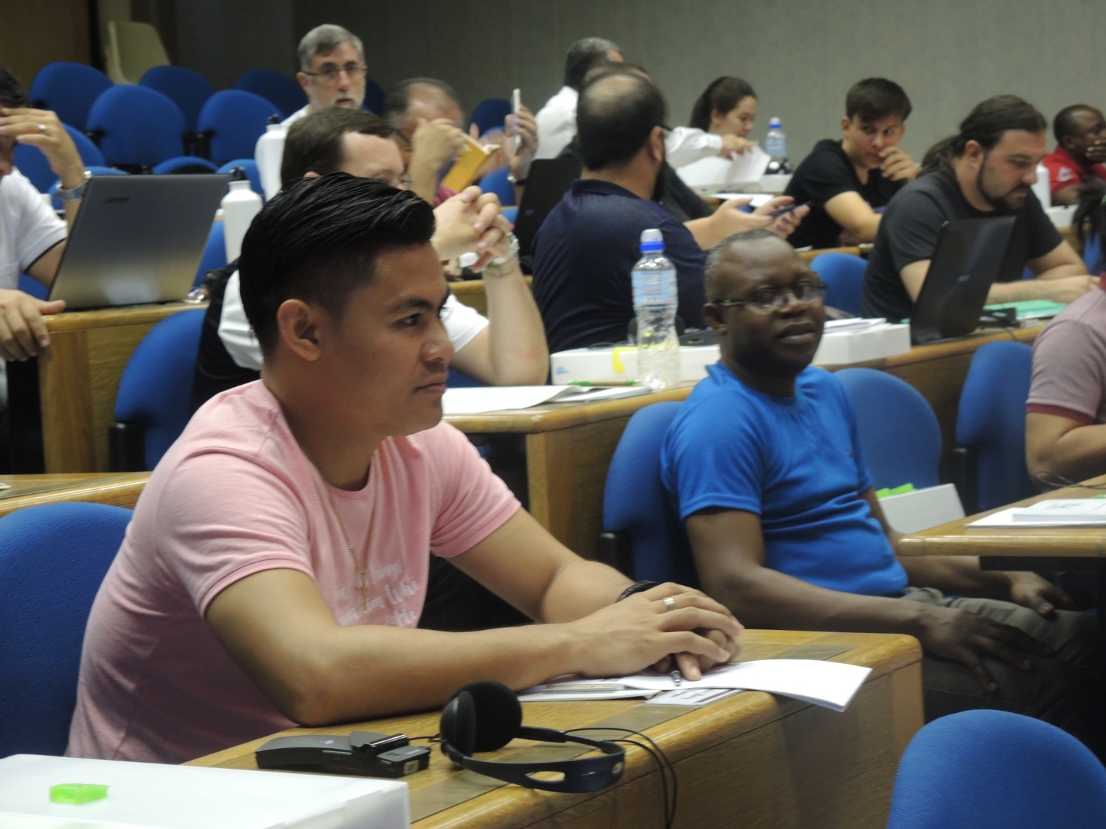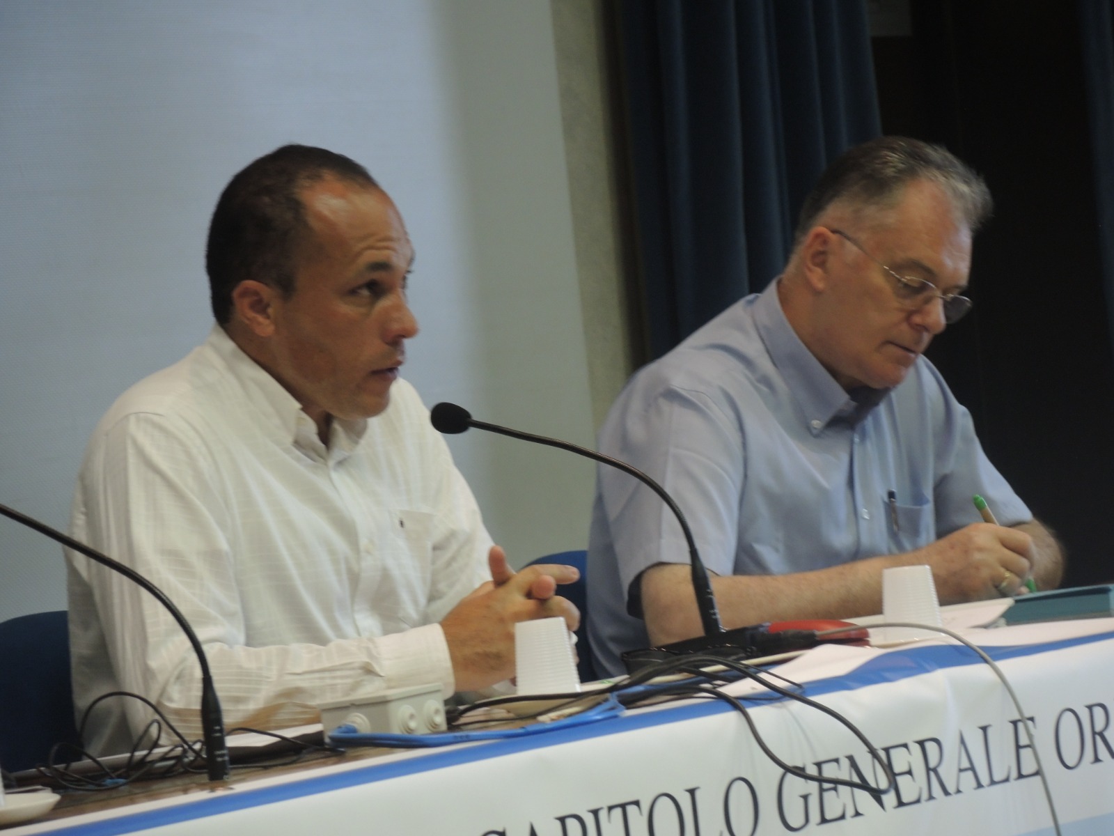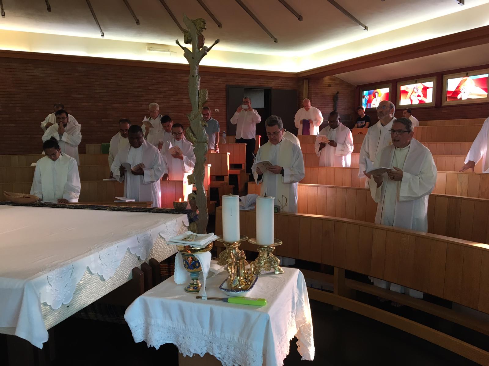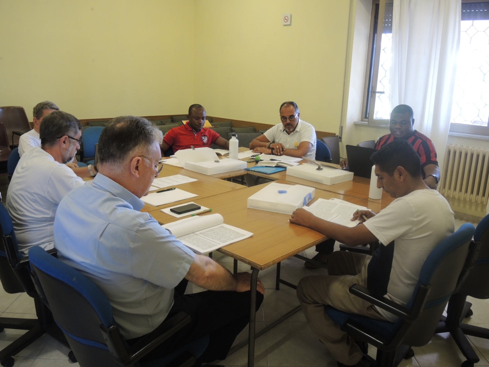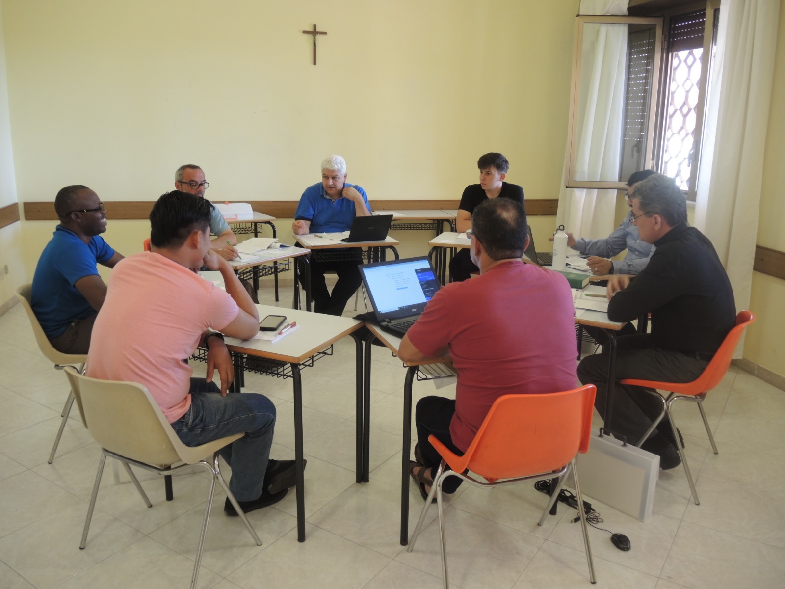 35º Capítulo Geral Ordinário - CGO - 2019 No detalhe um dos grupos durante as atividades.35º Capítulo Geral Ordinário - CGO - 2019 (22 de julho de 2019) Todos os dias celebramos a Eucaristia e o Ofício Divino em idiomas diferentes, de acordo com nossas partes territoriais e participantes. Hoje a celebração da manhã foi organizada por Pe. João da Costa Holanda, que trabalha, assim como os padres que concelebraram junto ao altar, na Amazônia. Ele lembrou que o sínodo da Amazônia sera celebrado em breve, em Roma. No altar havia objetos da Amazônia e particularmente uma "rede" onde se dorme, muito usada na Amazônia devido o calor. Havia também um "cocar" que é uma touca ou tiara de penas usada por tribos indígenas. Oramos pelo povo da Amazônia, que pertence a nove países, não apenas ao Brasil como às vezes pensamos. O resto do dia, após uma breve reunião sobre a metodologia, na sala de reunião, iniciamos o trabalho em grupos. Os grupos são 4 e são constituídos, nesta primeira fase com a presença dos leigos, por 7 ou 8 pessoas, liderados por um coordenador indicado pela presidência do capítulo e com um secretário eleito no grupo. O trabalho de hoje nos grupos refere-se à releitura e debate sobre a relação do Superior, o Instrumentum laboris e os documentos do Magistério da Igreja. À noite, os quatro coordenadores se reunirão para resumir os resultados. Giorno di lavoro a gruppi