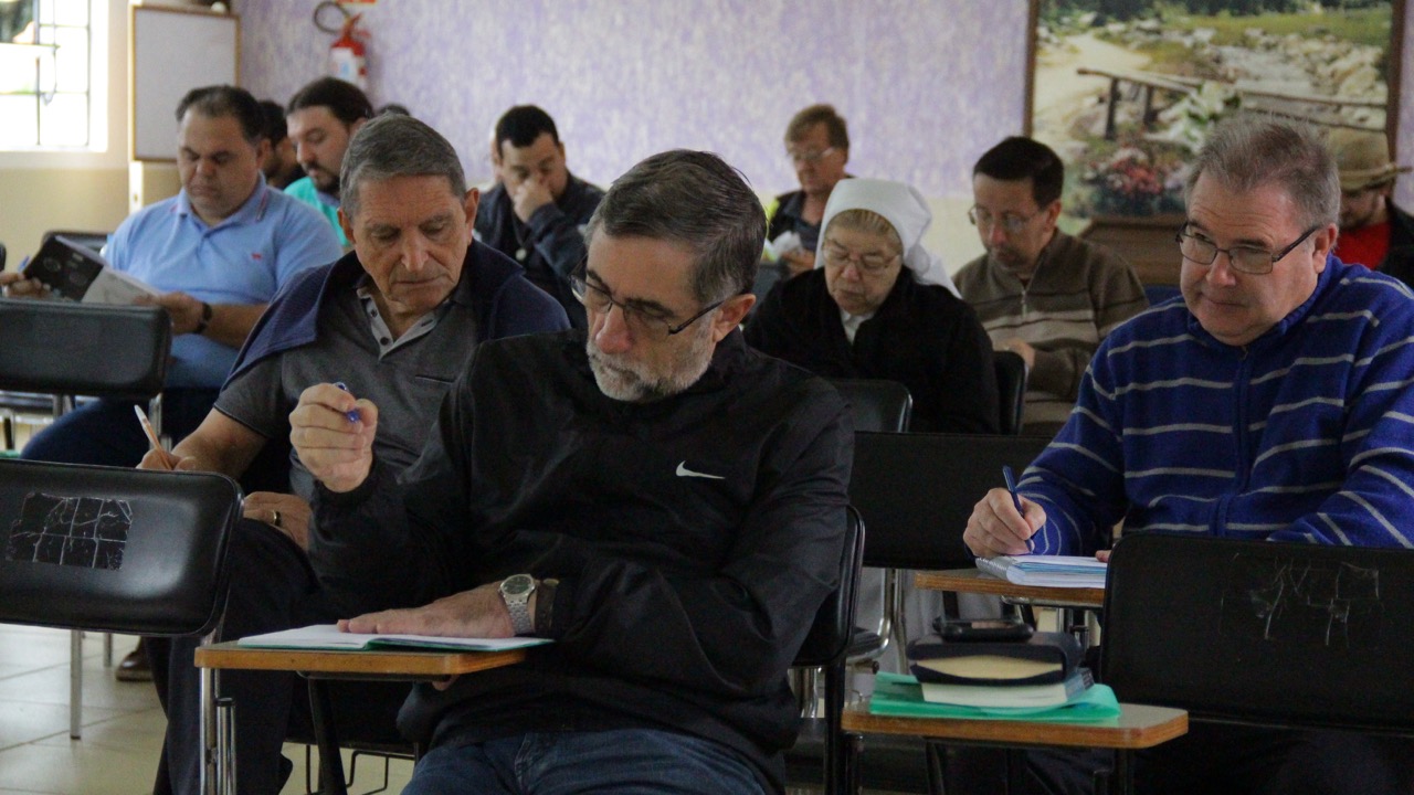 Renovar-se espiritualmente No detalhe pintura que se encontra no interior da Capela do Cenáculo Cavanis, nossa casa de retiros em Castro-PR.Em todas as partes territoriais, todos os anos os religiosos fazem um curso de exercícios espirituais. Esta é uma das formas que os religiosos utilizam para cuidar da “vida escondida com Cristo em Deus Pai”. Vindos de todas as frentes missionárias onde atuamos em vários Estados do Brasil, eles fazem uma pausa das atividades cotidianas nas comunidades, escolas e obras, e se reúnem para o Encontro Fraterno que conta com dias dedicados aos exercícios espirituais. Atribuímos a Virgem Maria inumeráveis graças