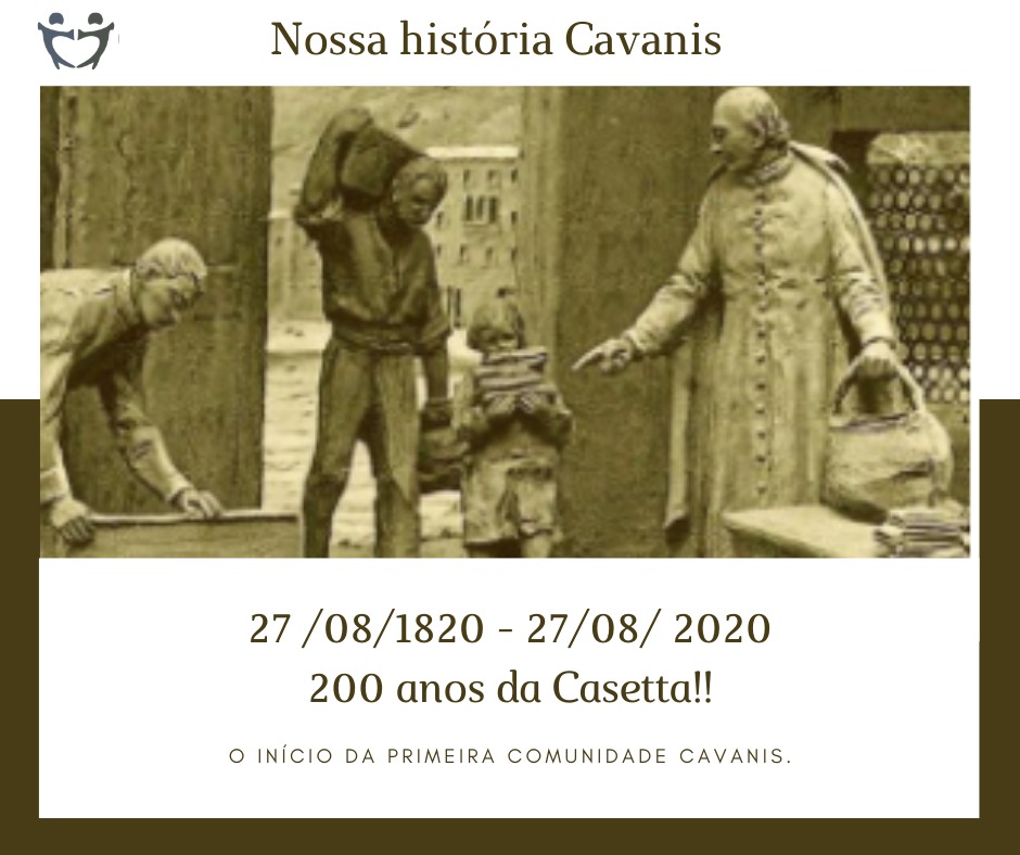27 de agosto de 1820: início da primeira comunidade Cavanis 3C.A comemoração deste bicentenário é oportunidade de voltar às origens da congregação religiosa, fruto de um longo discernimento fundado na oração e na experiência educativa iniciada há muitos anos. Um caminho que ia se revelando à medida que caminhavam. Não podemos esquecer e, tampouco nos envergonhar, desse humilde começo, que nos dá motivação para podermos renovar e viver com fidelidade nossa vocação.