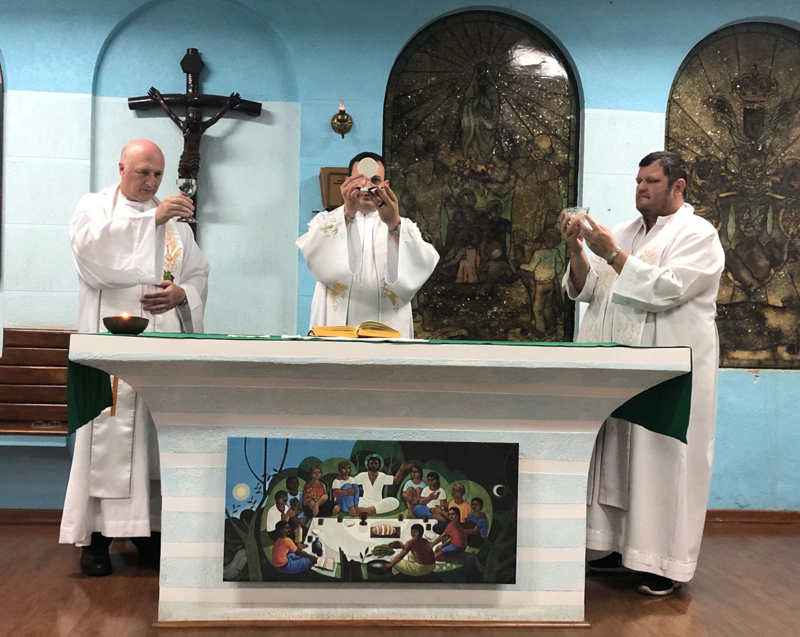 Seminário Cavanis de Teologia acolhe novo reitor Foto feita durante a celebração.Dia 05/10/2021 celebramos a Eucaristia de mudança do reitor do Seminário. Pe. Paulo Welter, depois de 2 anos e 10 meses à frente do Seminário se despediu desde serviço próximo a sua viagem para Itália. Assim, recebemos a Pe. Rogério Diesel como o novo reitor da Casa de formação. A Eucaristia foi precedida por Pe. Paulo e concelebrada por Pe. Rogério e Pe. Milton. Além dos religiosos da casa, tivemos a presença das irmãs missionárias do Sagrado Coração e das irmãs Franciscanas Penitentes Recoletinas. Depois da Missa tivemos um jantar de confraternização. Diego Patricio Vera, seminarista |