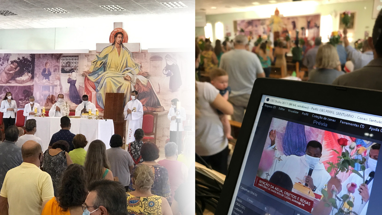 No detalhe, padre Aimé, durante a celebração presidida no Santuário Santa Rita.