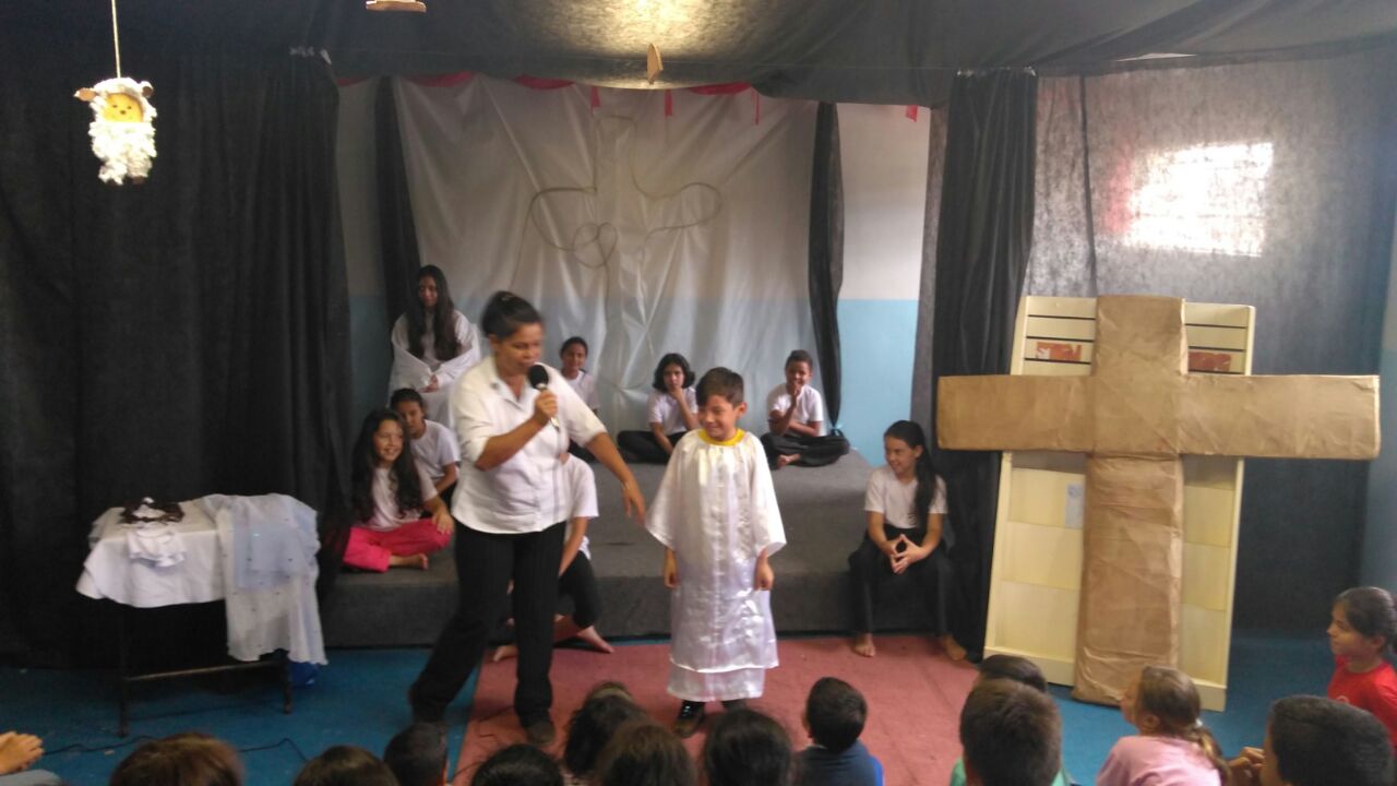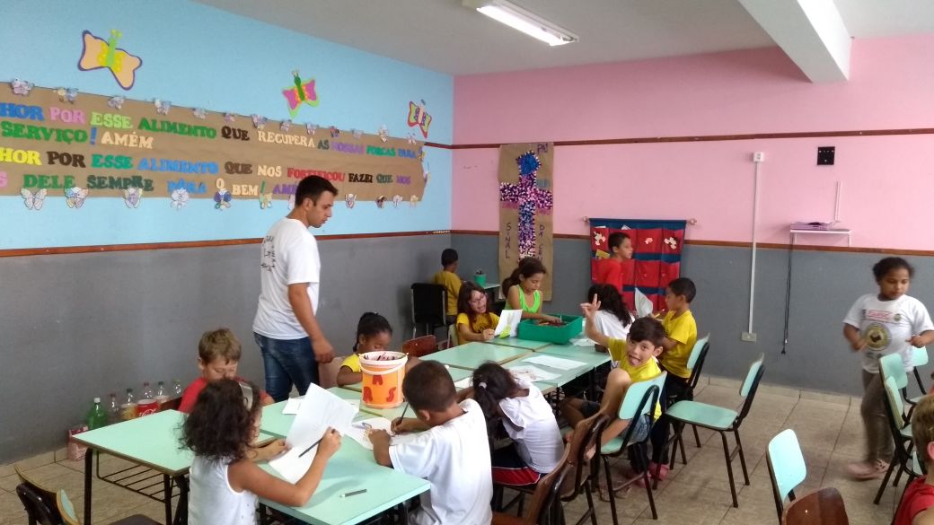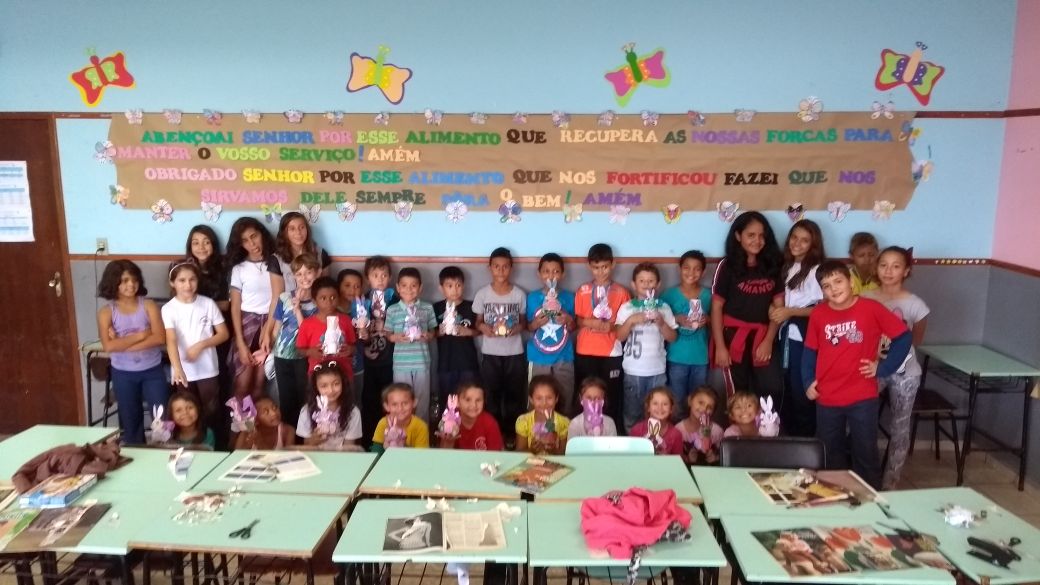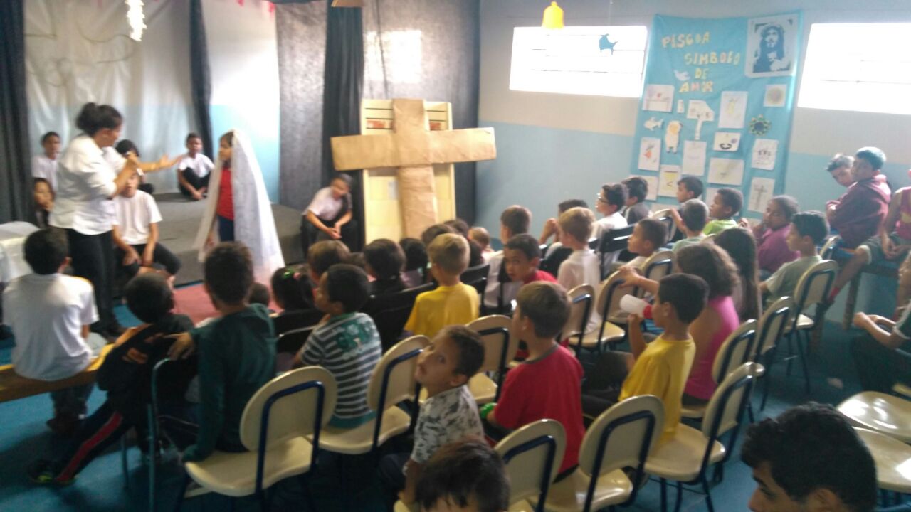 Os frutos, ainda que timidamente, seguem aparecendo! No detalhe, realização de uma das atividades junto as crianças da "Casa".Vivemos intensamente o período da quaresma, procurando sempre refletir junto as crianças a importância deste momento e nos preparando para a semana santa. Realizamos a encenação da Paixão de Cristo, atividade que envolveu nossas crianças em todos os estágios desde a confecção e construção do material utilizado até a apresentação. Para celebrarmos a festa da Páscoa, depois de juntos aprendermos juntos o sentido verdadeiro desta festa, entramos no mundo dos contos infantis. Nossos pequenos confeccionaram um cesto de páscoa, já contando com os chocolates que com certeza viriam... E veio mesmo! De surpresa chega em nossa "Casa" o senhor Moacyr, colaborador e atual prefeito da cidade, ele distribuiu ovos de chocolate para todos. Além da formação espiritual - através da encenação da Paixão de Cristo - e das atividades culturais - relacionadas ao conto do coelhinho da páscoa - aqui também nos preocupamos em transmitir o aprendizado para com o meio ambiente, nossa "casa comum". Contando com a ajuda de funcionários da "Casa" e voluntários, revitalizamos uma área verde, nosso bosque, para que se torne um espaço agradável de intereção com a natureza para nossas criancas. Será também um ótimo lugar para o lazer e recreação. Sobre as atividade em andamento a mais tempo: Acima listamos alguns, dentre nossos muitos motivos, pelos quais agradecemos a Nossos Senhor Jesus Cristo. Entre as próximas atividades programadas, no domingo de Páscoa, nossas crianças, adolescentes e jovens, na companhia de seus familiares, após participarem da celebração da Santa Missa, a qual somos os responsáveis por organizar a parte litúrgica, iremos homenagear através de um pequeno gesto de carinho e agradecimento, aos colaboradores e benfeitores, padrinhos e madrinhas, que estarão participando conosco e através de nossas orações para aqueles que estarão distantes. Uma feliz e Santa Páscoa a todos. Adriano Roberto dos Santos Abril de 2017 - Atividades na Casa da Criança e do Adolescente Padre Marcello Quilici