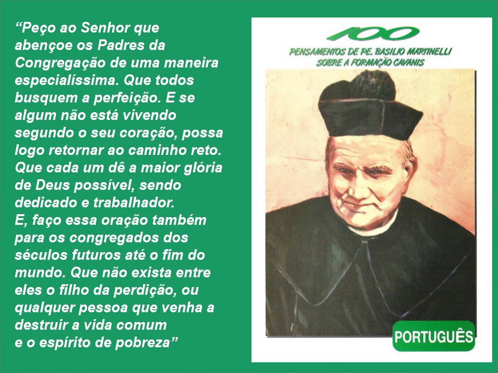 100 pensamentos de Padre Basilio 3CCitações transformadoras de fácil e rápida leitura, que podem ser feitas no dia a dia, para quem deseja conhecere mais sobre este venerável homem e de nossa Congregação.