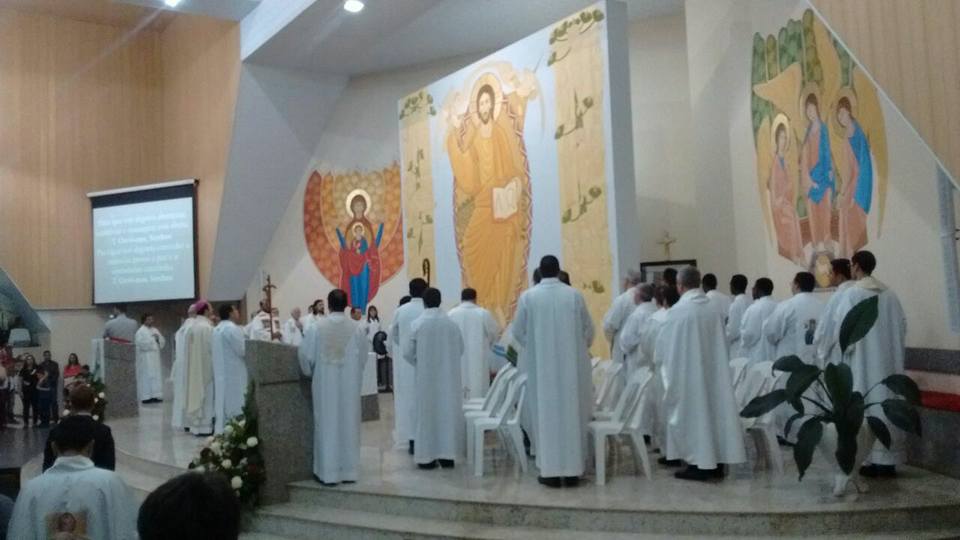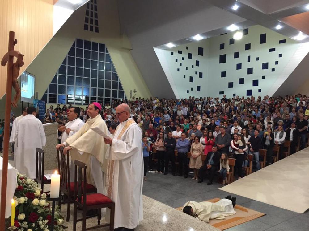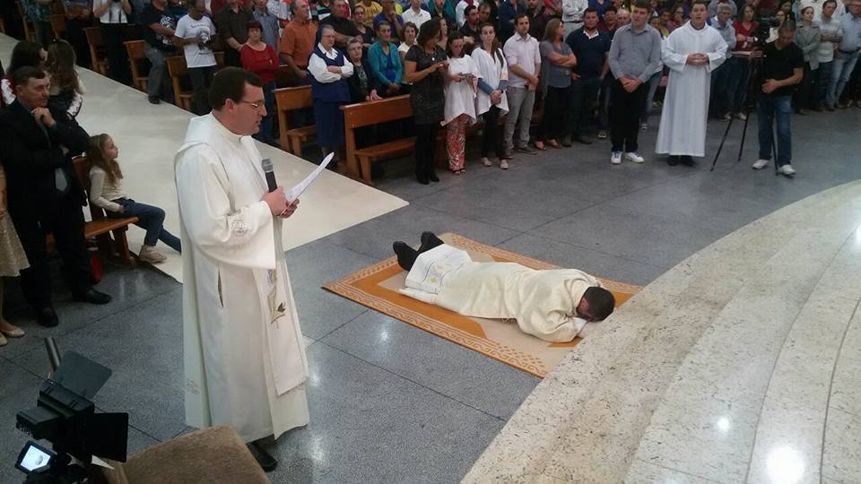...gratidão a Deus pela Ordenação Presbiteral de mais um jovem Cavanis "O eleito prosta-se, como sinal de sua total entrega a Deus." Ordenação Presbiteral - Padre Jonas Barbacovi CSCh.2017 - “ANO MARIANO” - “ANO CALASANZIANO” Caros confrades, Leigos e Amigos Cavanis! Escrevo esta Boa Semana com sentimento de gratidão a Deus pela Ordenação Presbiteral de mais um jovem Cavanis, o Neo Sacerdote “Pe. Jonas Barbacovi”, que foi ordenado presbítero neste sábado dia 15 de julho na Paróquia Cristo Rei de Realeza e neste domingo, dia 16 de julho, dia de “Nossa Senhora do Carmo”, celebra sua primeira missa na sua comunidade natal da Linha José, interior de Realeza. Ao Pe. Jonas Barbacovi os nossos mais sinceros votos de um abençoado ministério presbiteral e que possa continuar sendo um “Verdadeiro Pai da Juventude”, a exemplo dos nossos Fundadores. Em nome da nossa Província quero expressar nossa imensa gratidão a todos os confrades, seminaristas, religiosos e leigos que formaram a equipe vocacional e trabalharam intensamente nas Paróquias de Realeza e Pérola D`Oeste, também em vista da ordenação presbiteral do Pe. Jonas Barbacovi. Agradeço a confiança dos formadores e a acolhida dos nossos confrades do Sudoeste do Paraná. Foram dias intensos de oração, fraternidade e trabalho vocacional nas escolas e em quase todas as comunidades destas duas Paróquias. Somente Deus pode retribuir o carinho e acolhida dos nossos confrades e de todos os leigos que se colocaram disponíveis para acolher e servir. Que Deus recompense a todos. Agradeço também a presença dos confrades que estiveram na ordenação e que motivaram as comunidades a participarem. Também aos que não puderam vir, mas rezaram. Mesmo que tenha caído num domingo, o dia 16 de julho é um dia muito especial para nós Cavanis, assim como para toda a Família Carmelita. Celebramos o dia de “Nossa Senhora do Carmo”, a Mãe do Carmelo, e poderíamos chamar também de co-padroeira da nossa Congregação. Foi no dia 16 de julho de 1838 que a nossa Congregação foi proclamada canonicamente como “Congregação das Escolas de Caridade”. Além disso, muitas graças foram recebidas de Deus nesta data. Que Nossa Senhora do Carmo interceda por toda nossa Congregação e principalmente por nossa Província que vive a preparação para o cinquentenário. Nossa Senhora do Carmo! Rogai por nós!. COMUNICADOS: